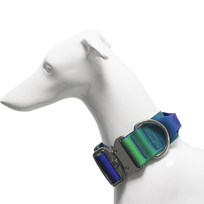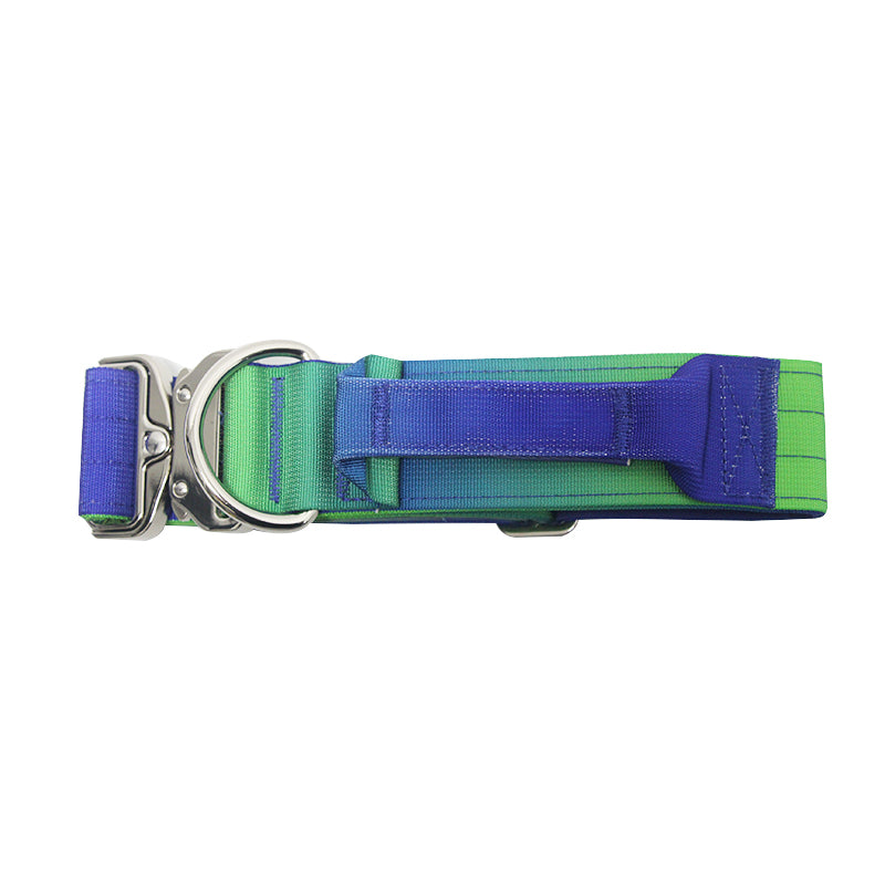 Look no further! Our Tie Dye Nylon Dog Collar with handle delivers vibrant style with sturdy build quality — perfect for walks, road trips, daily adventures and family-friendly outings.